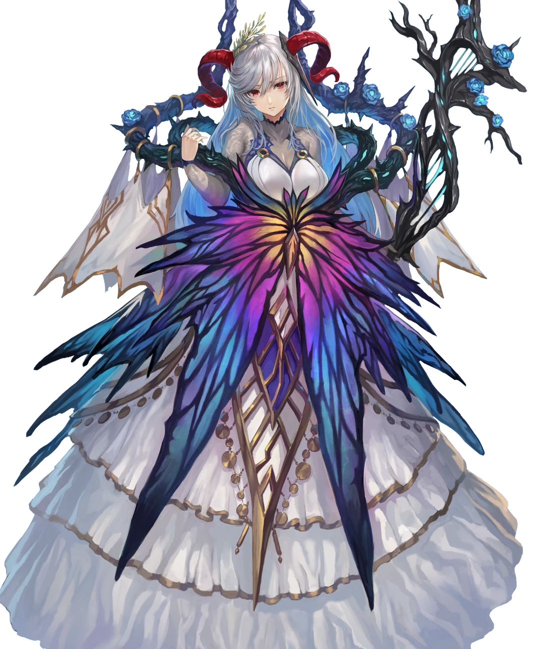 Originating from an Askr that fell to ruin where Breidablik was infused with the Heart of Angrboða in a dark ritual to try and kill the Ruler of the Dead, Hel. While the Order of Heroes of that world were unsuccessful, Líf delivered the empowered relic to another realm and lead to Hel's ultimate defeat. Dire Breidablik has lost it's ability to summon Heroes, instead drawing from it's counterpart's database to weaponize the existing powers of other Heroes. Through it, Summoners can equip inheritable skills from their Heroes, and transform the relic into a variety of weapons to use in combat.